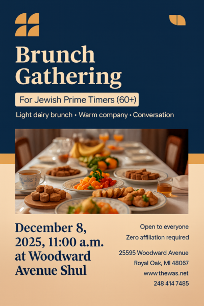 BBQ Shabbat Dinner - Lag Baomer themed Where: Woodward Avenue Shul When: Friday, May 16th at 7:00PM - Services followed by Dinner. Cost: $18 per person, sponsorships available at $180, $360! Please let us know that you plan to attend [...]